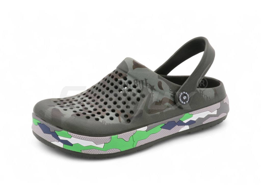 Dopřejte si dokonalou kombinaci pohodlí, stylu a odolnosti s těmito dámskými clogsami v moderním maskáčovém designu. Tyto lehké nazouváky jsou ideální volbou nejen na doma, ale i na procházky, dovolenou nebo k vodě.