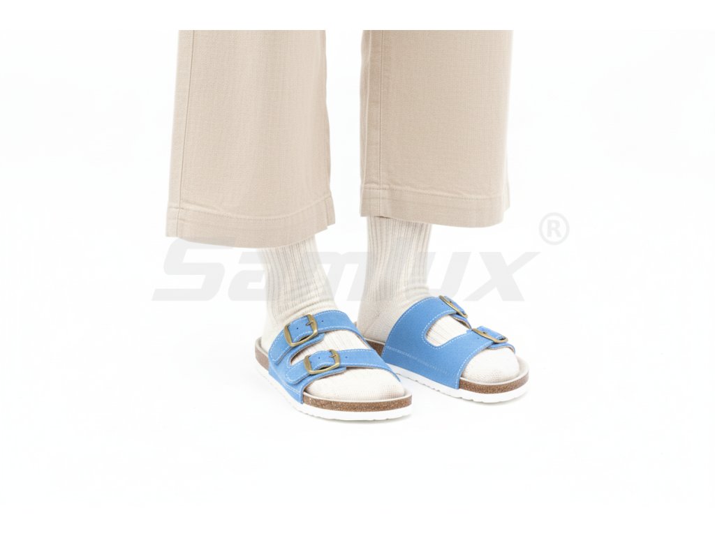 Dámské kožené korkové pantofle světle modré 988-L11 (100% kůže)