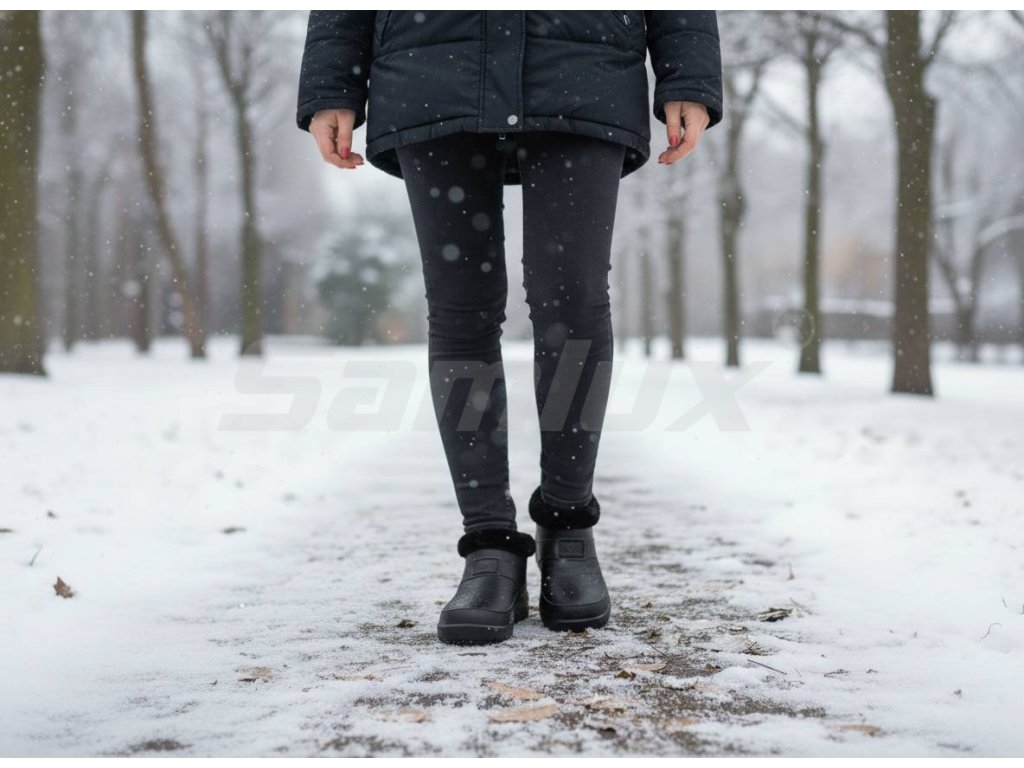 Tyhle dámské zimní nazouvací boty jsou z ultra lehkého EVA materiálu a jsou zevnitř zateplené kožešinou. Obuv je nepromokavá a vhodná pro nošení v jarních a podzimních měsících do deště ale i do sněhu, uvnitř i venku. Snadno se obouvají a zouvají. Boty jsou vhodné také jako přezůvky do zahrady a kolem domu.