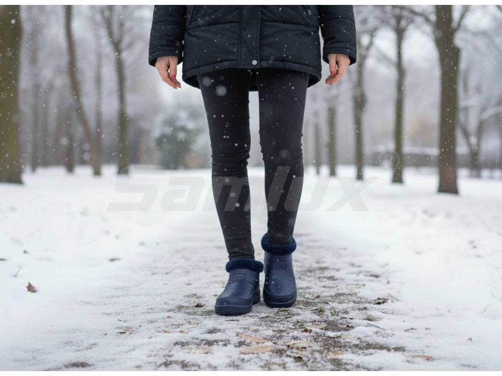 Tyhle dámské zimní nazouvací boty jsou z ultra lehkého EVA materiálu a jsou zevnitř zateplené kožešinou. Obuv je nepromokavá a vhodná pro nošení v jarních a podzimních měsících do deště ale i do sněhu, uvnitř i venku. Snadno se obouvají a zouvají. Boty jsou vhodné také jako přezůvky do zahrady a kolem domu.